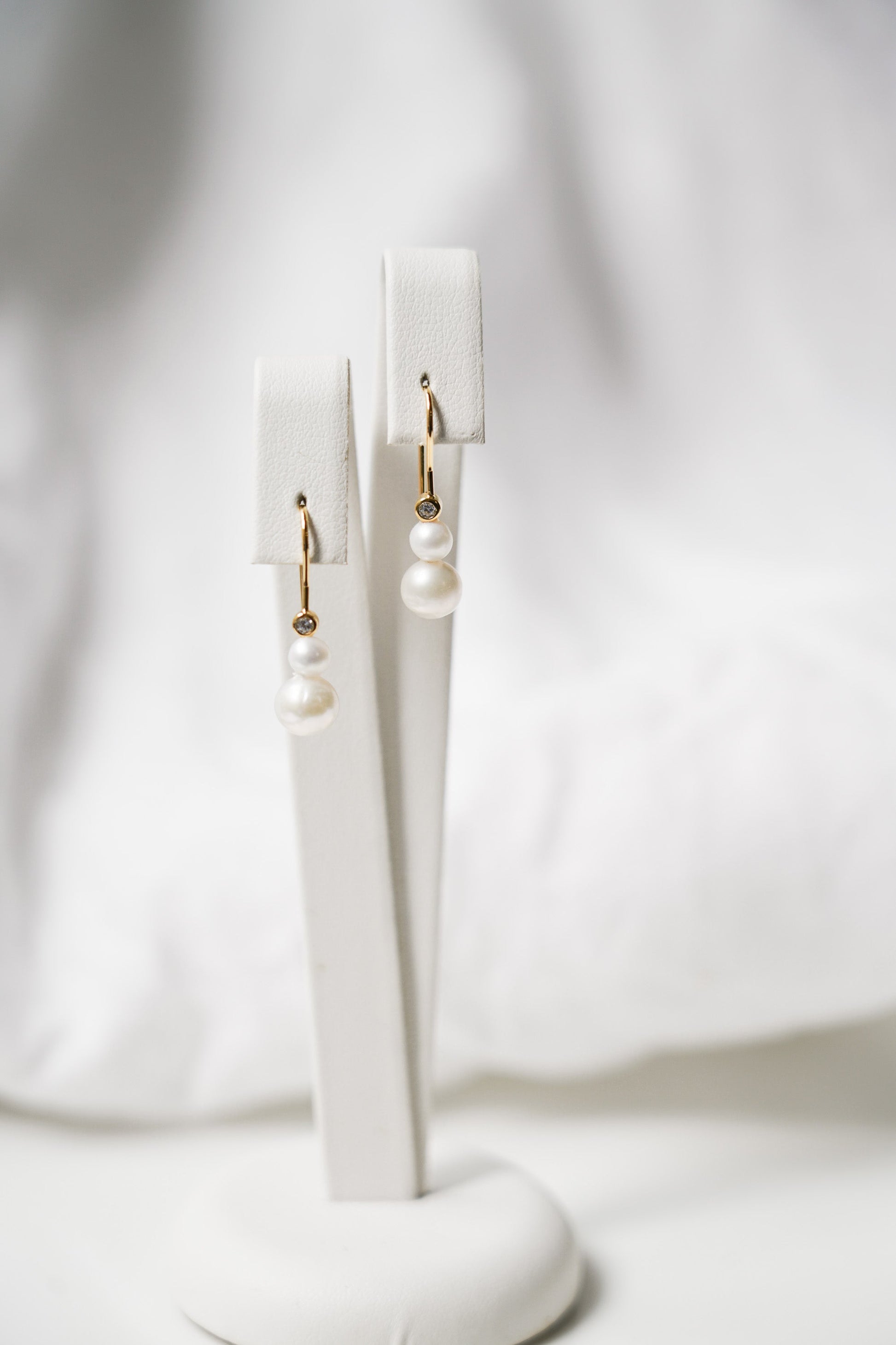 Ces magnifiques boucles d’oreilles pendantes sont faites avec de beaux crochets d’oreille en Argent massif. Ces crochets sont ornés de petits zirconiums ronds qui ajoutent une touche d’éclat discrète et élégante. Chaque boucle d’oreille est agrémentée de deux perles véritables de culture. Une perle irrégulière ronde et une plus petite par dessus. Ces perles baroques sont uniques et rendent ces bijoux uniques et sophistiqués.