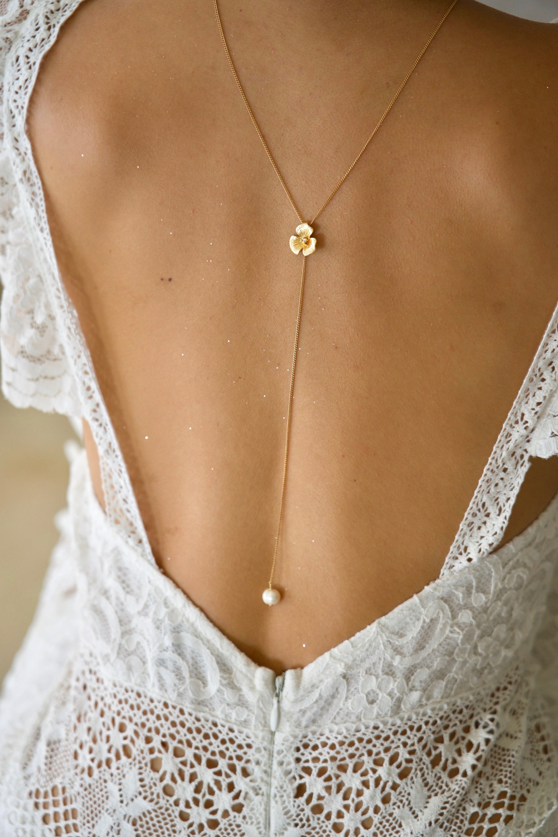Ce ravissant bijou de corps a été conçu pour compléter un robe de mariée dos nu.