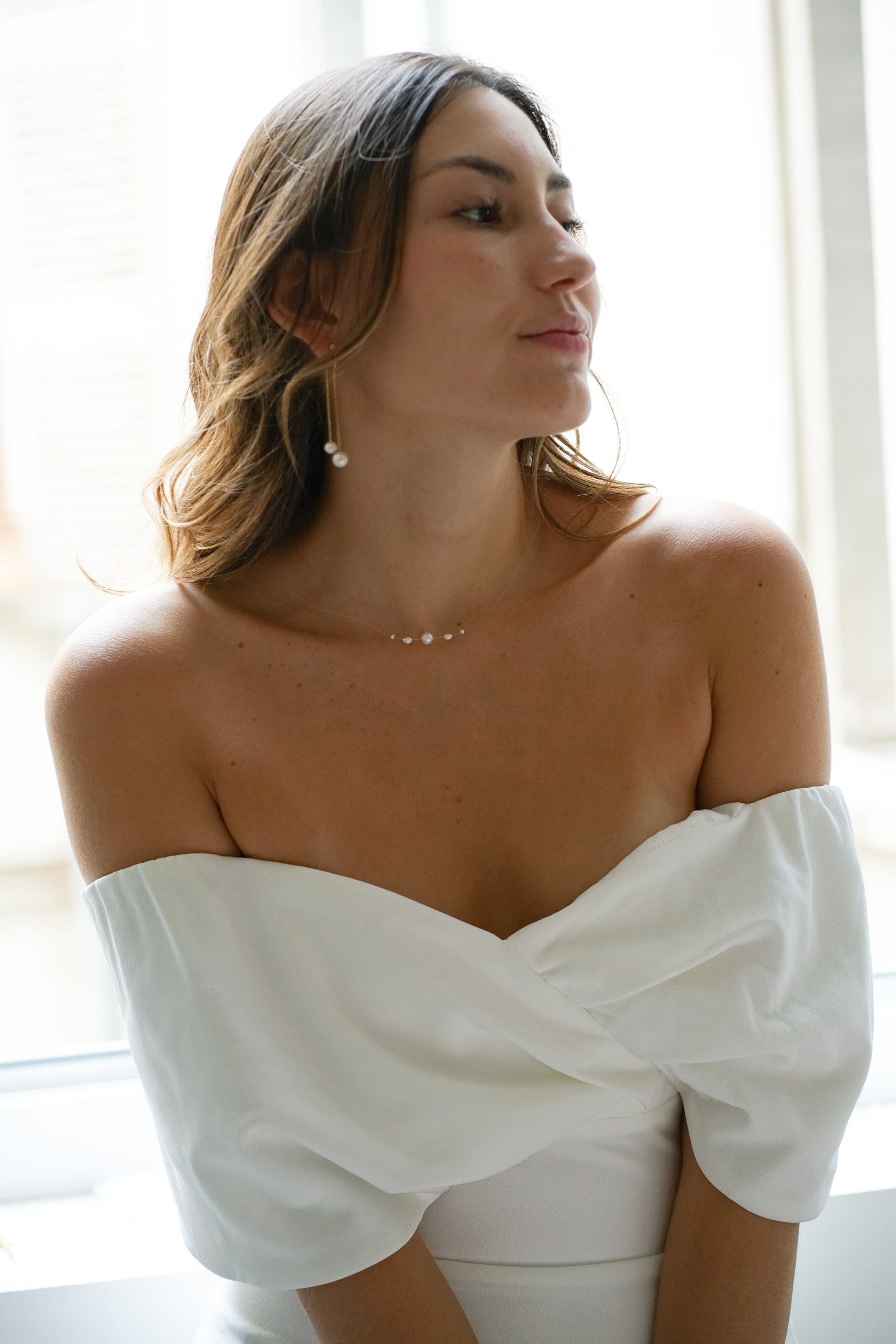 Les boucles d’oreilles Raffinées, délicates et élégantes, sont le choix parfait pour une mariée en quête de bijoux discrets mettant en valeur son éclat naturel.