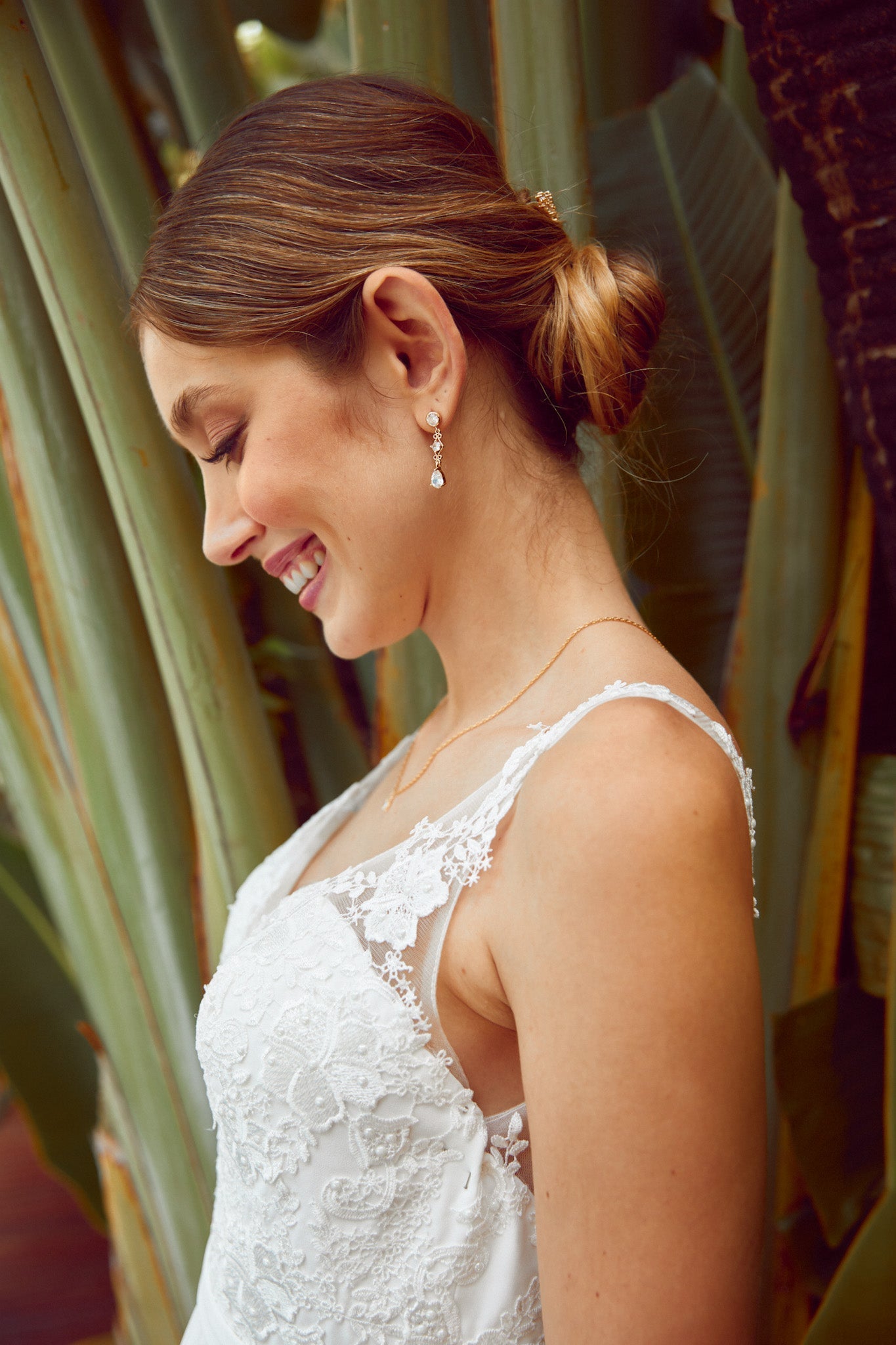 Ce collier de dos mariage en forme de T s’enfile tout simplement par la tête. Attention aux coiffures volumineuses. Notre suggestion c’est de le porter avant de commencer la mise en beauté.