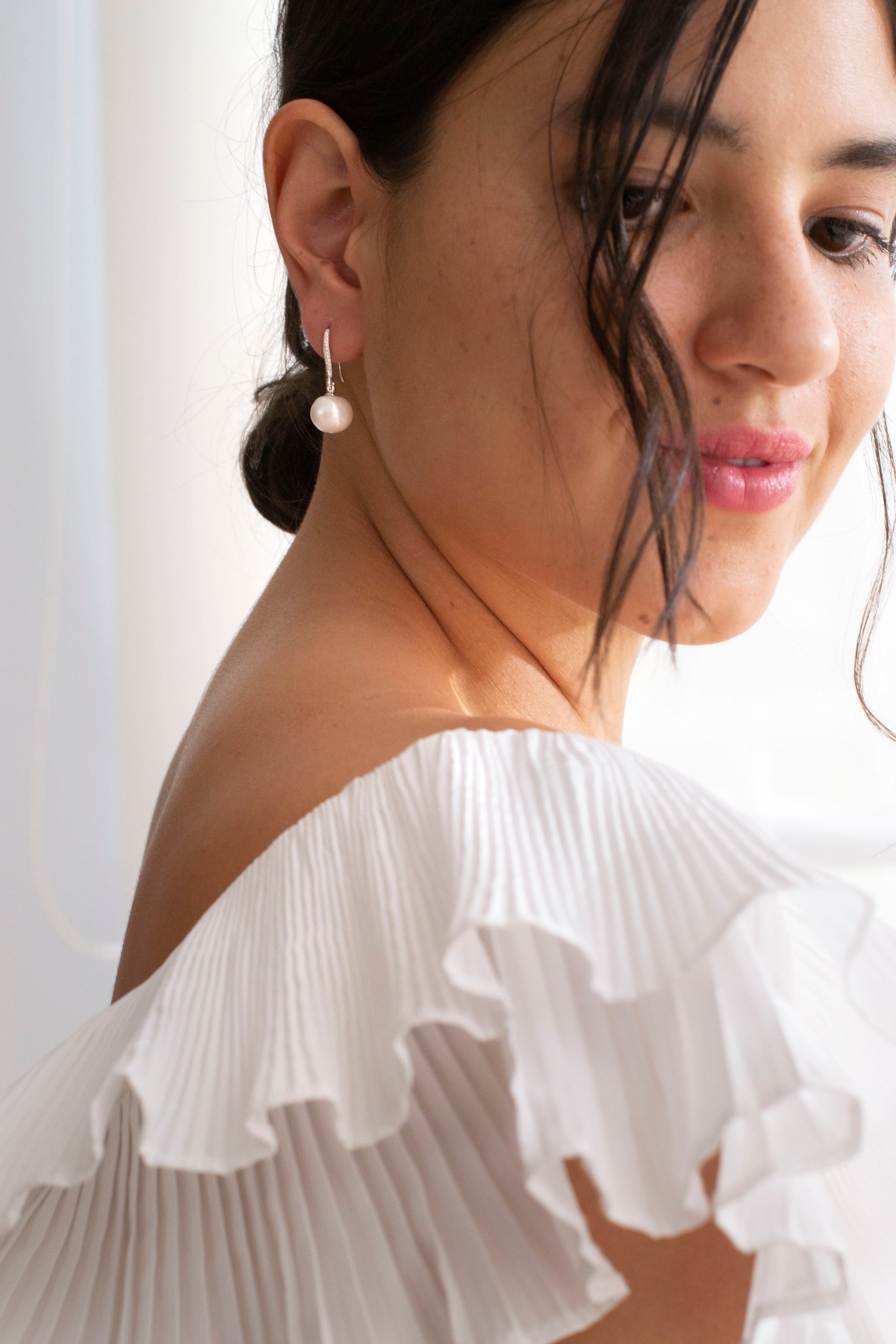 Ces magnifiques boucles d'oreilles minimalistes et modernes, ont été fabriquées avec des crochets d'oreilles dorés ou argentés auxquels pend une perle ronde naturelle d'eau douce délicatement. Ces bijoux sont faits en métal recouvert par un bain d'or de 24k ou d'argent.